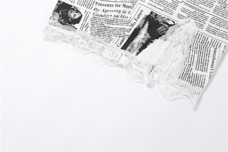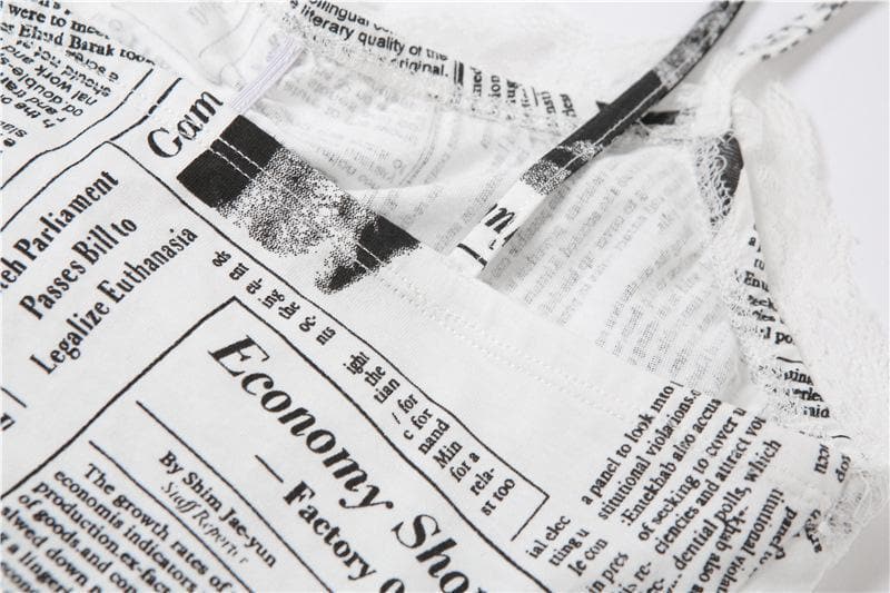 Hem lace newspaper print slit cami dress