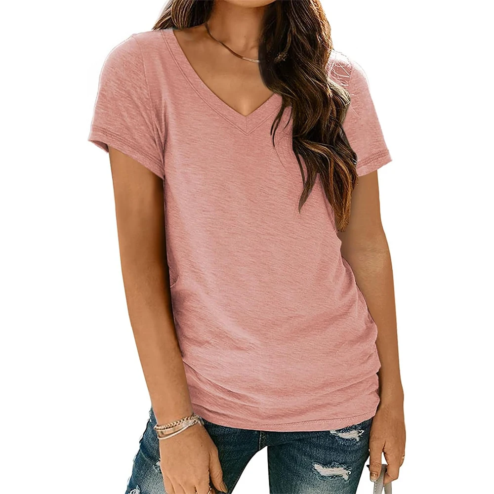 T Shirts Short Sleeve V Neck Tees for Women Fashion Tops Trendy Lightweight Soft Casual Summer Outfits Clothes 2024